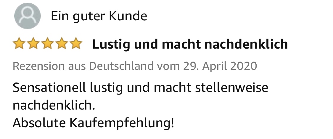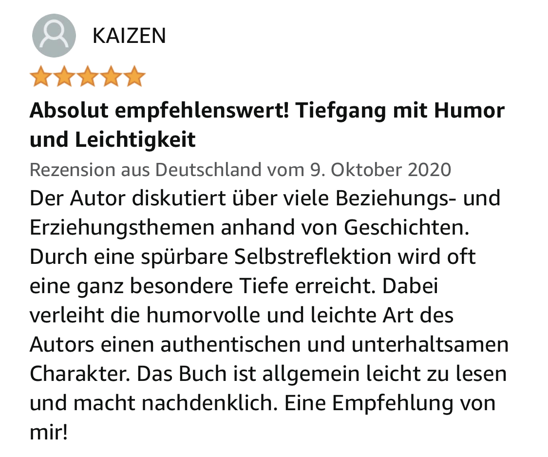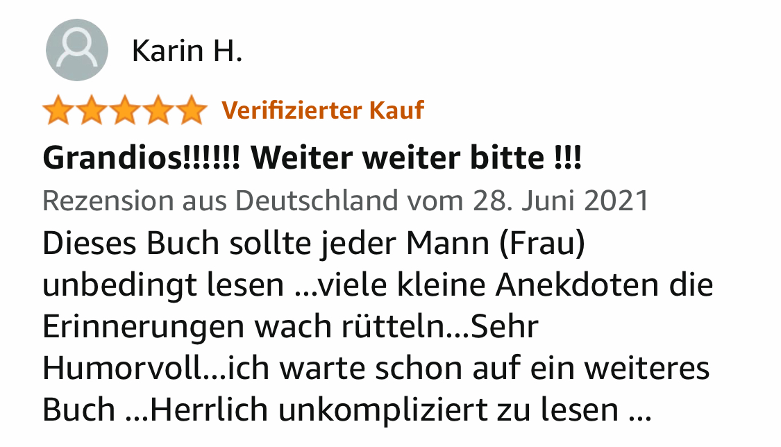 Der Autor nimmt kein Blatt vor dem Mund, sondern beschreibt dieses phantasievoll, ehrlich und wortgewandt mit vielen Anekdoten voller Selbsterkenntnis und innerer Einsicht. Die vielen Eindrücke (die Dellen der Seele) werden durch die Leichtigkeit der Erzählung wieder ausgebügelt und geglättet, so daß dem Leser (dazu gehörten auch die Frauen), ein Spiegel vorgehalten wird, indem er sich mühelos wiedererkennen kann.